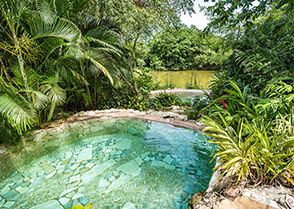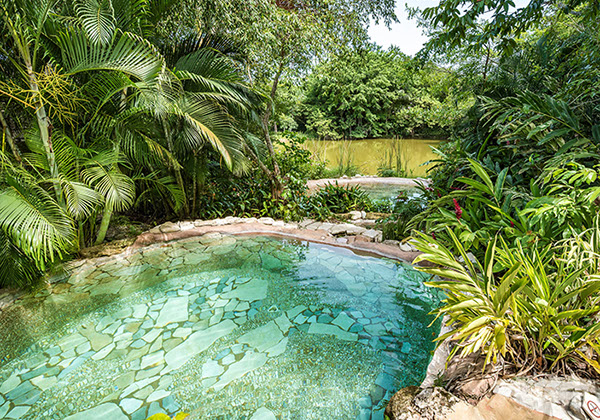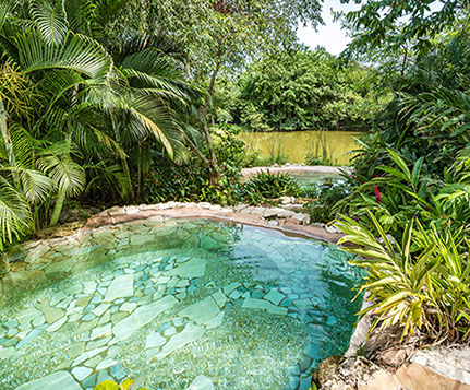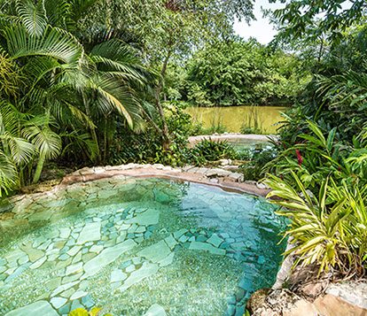 Der Gebäudekomplex besteht aus: zwei Junior-Suiten, vier Deluxe-Suiten, eine Queen Suite und eine Präsidential Suite. Unsere Poolanlage mit den typischen Wasserfällen des Dschungels um Palenque ist eingebettet in die üppigen Flora des Staates Chiapas.