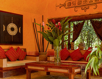 The architectural complex consists of two Junior Suites, four Deluxe Suites, one Queen Suite and one Presidential Suite. Amidst luxuriant jungle flora our swimming pools recall the typical waterfalls found in the ruins of Palenque. Our vision is to recreate an exquisite Pre-hispanic atmosphere based on historic and archaeological data, allowing you to live the Maya World in full without sacrificing any modern comfort luxury.